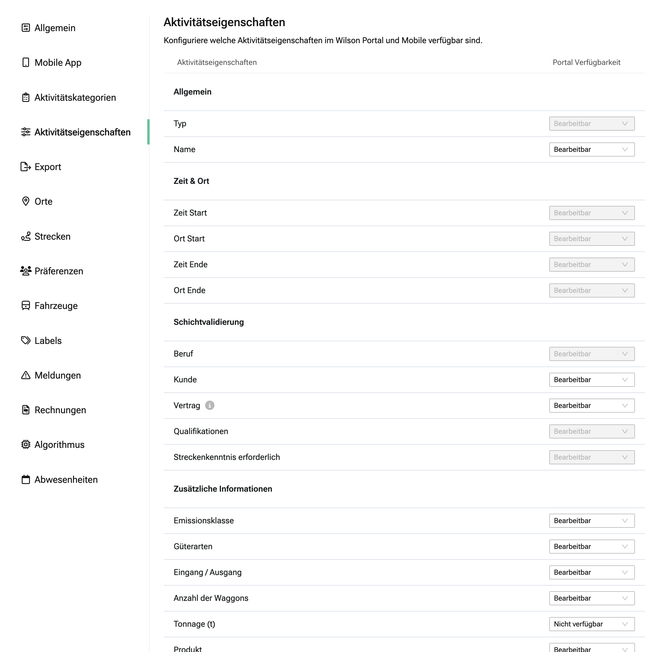Entscheide jetzt selbst, welche Eigenschaften von AktivitÀten im Portal angezeigt oder ausgeblendet werden. Als Admin kannst du WILSON so noch gezielter an die Anforderungen deines Unternehmens anpassen.